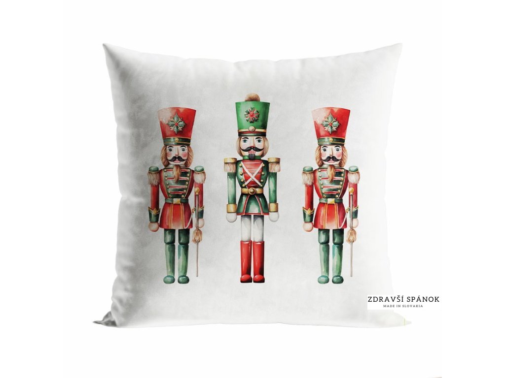 Vianočný motív luskáčikov, symbolu odvahy a sily, prinesie do vášho domova čaro a atmosféru tradičných sviatkov. Vďaka praktickému zipsu na bočnej strane je výmena vankúšov jednoduchá a rýchla. Skvele doplní váš obývací priestor, spálňu alebo detskú izbu a bude ideálnym vianočným darčekom pre vašich blízkych.